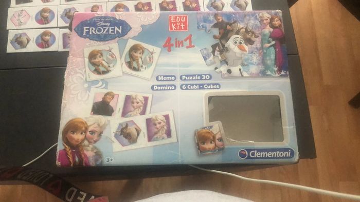 Jeux complet 4 en 1 la reine des neiges comprend Mémo puzzle 30 pièces domino et 6 cubes a recomposer