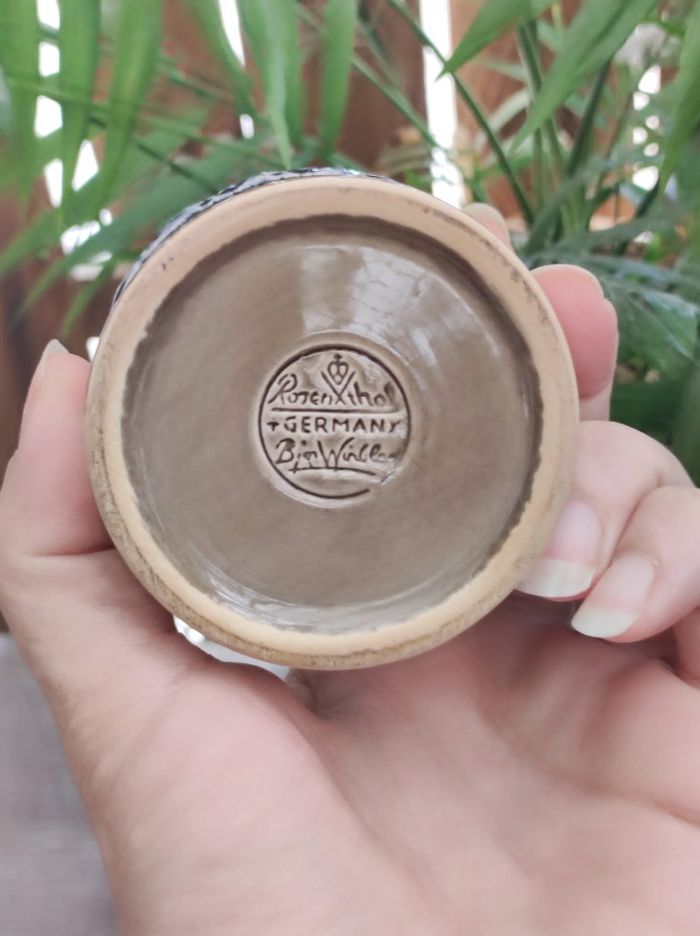 ROSENTHAL 'Studio Linie' Bjorn Wiinblad Schnaps, petite tasse sans poignée en grès allemand des années 1970, Bjorn Wiinblad 'Brotzeit Range'.
