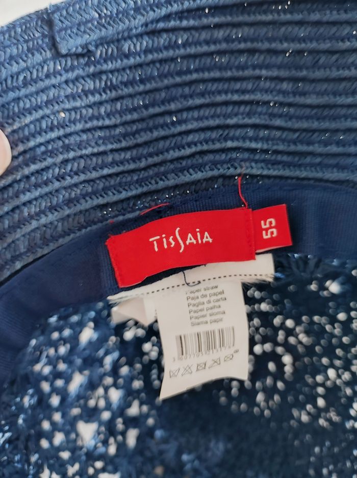 Chapeau bleu marine, matière comme un chapeau de paille, en très bon état.