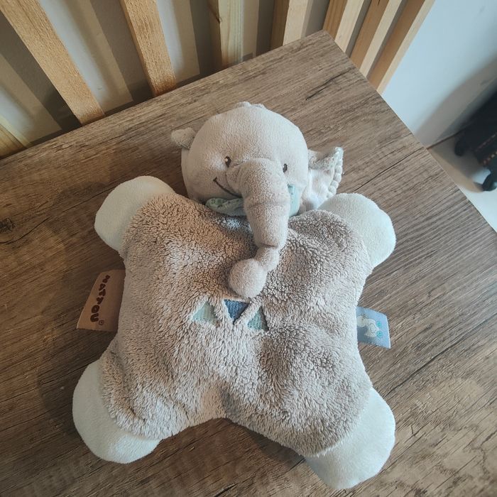 Doudou Coussin Elephant Gris Bleu Jack Nattou Tbe 9.90 euros Envoi en relais