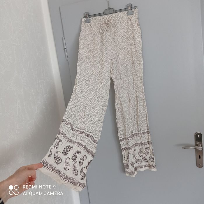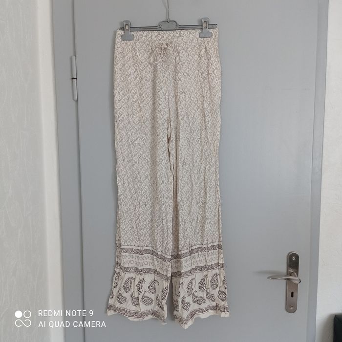 Pantalon à jambes larges crème t38 - photo numéro 1