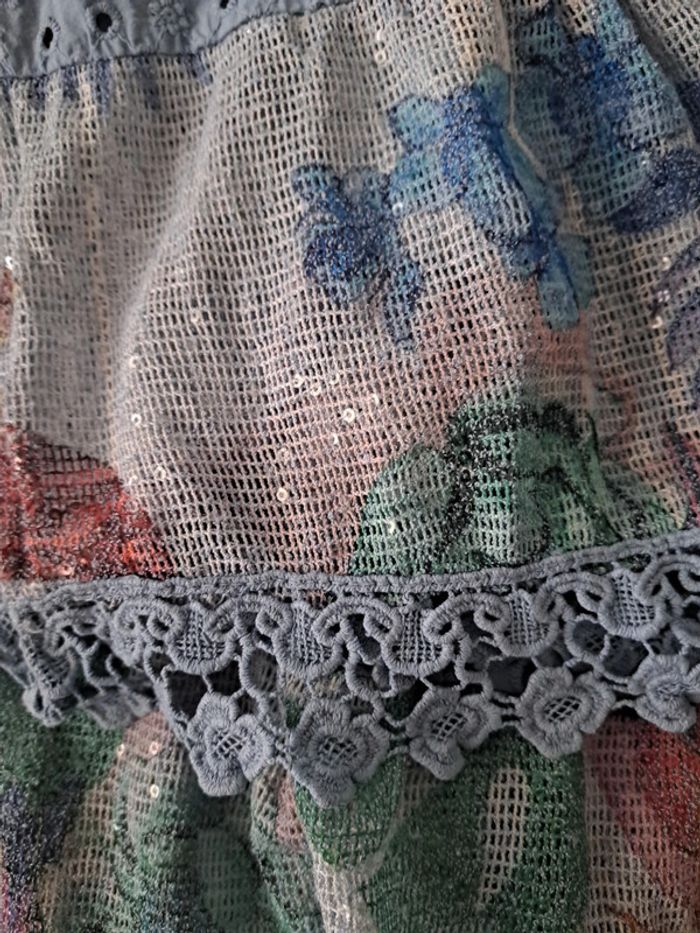 Haut bleu dentelle broderie et sequins - photo numéro 4