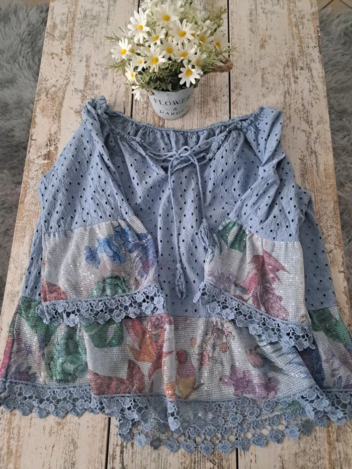 Haut bleu dentelle broderie et sequins - photo numéro 1
