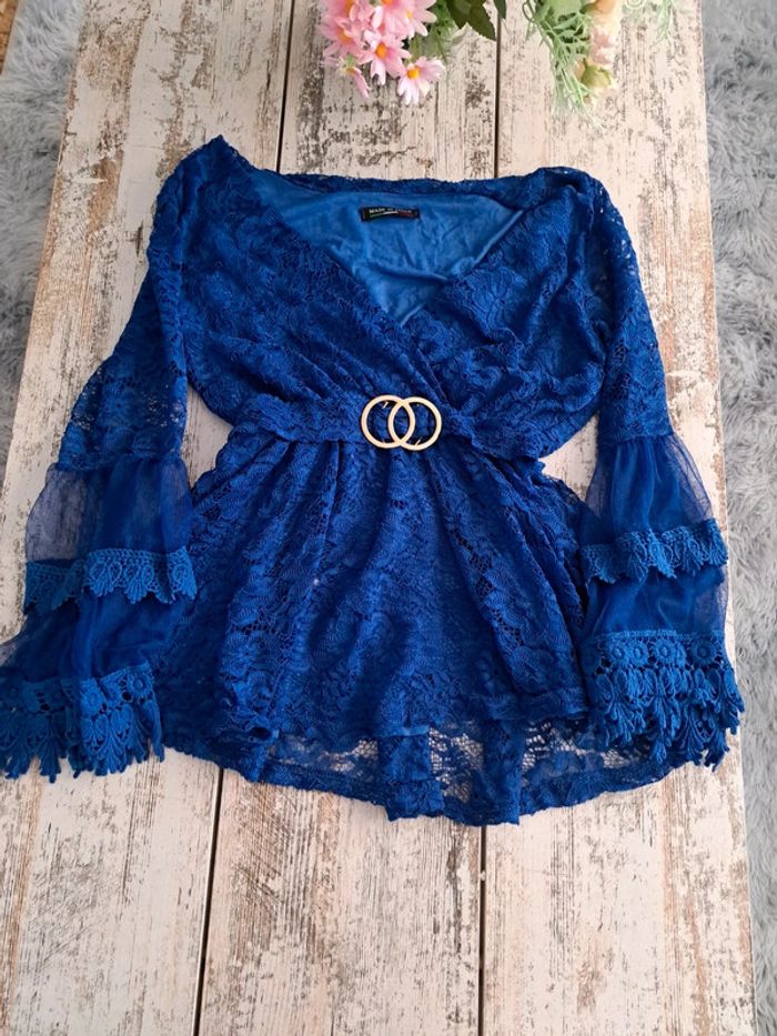 Magnifique haut en dentelle bleu foncé, c'est transparent sur les manches Taille : unique Marque : made in italy jamais porté