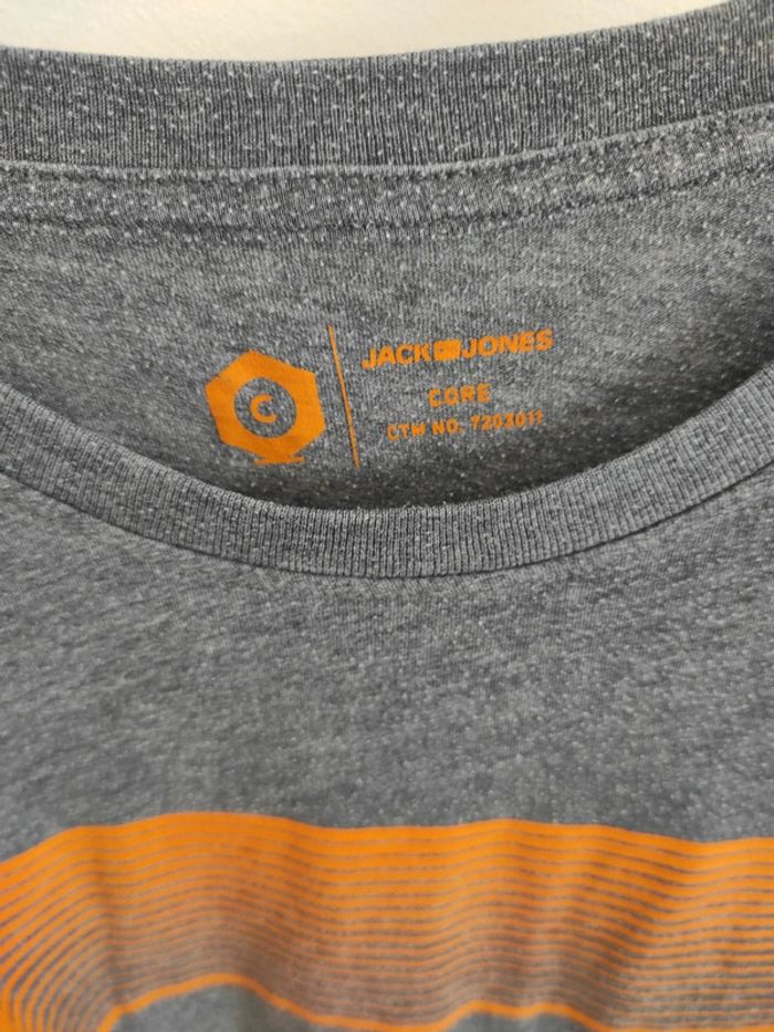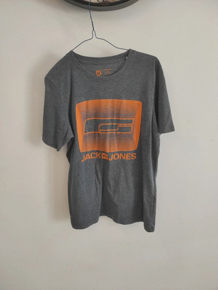 T-shirt homme Jack&Jones gris motif orange Taille S Étiquette intérieure coupée ➡️ N'hésitez pas à filtrer le dressing, je vends beaucoup de vêtements homme. Il y a des réductions sur les lots ☺️