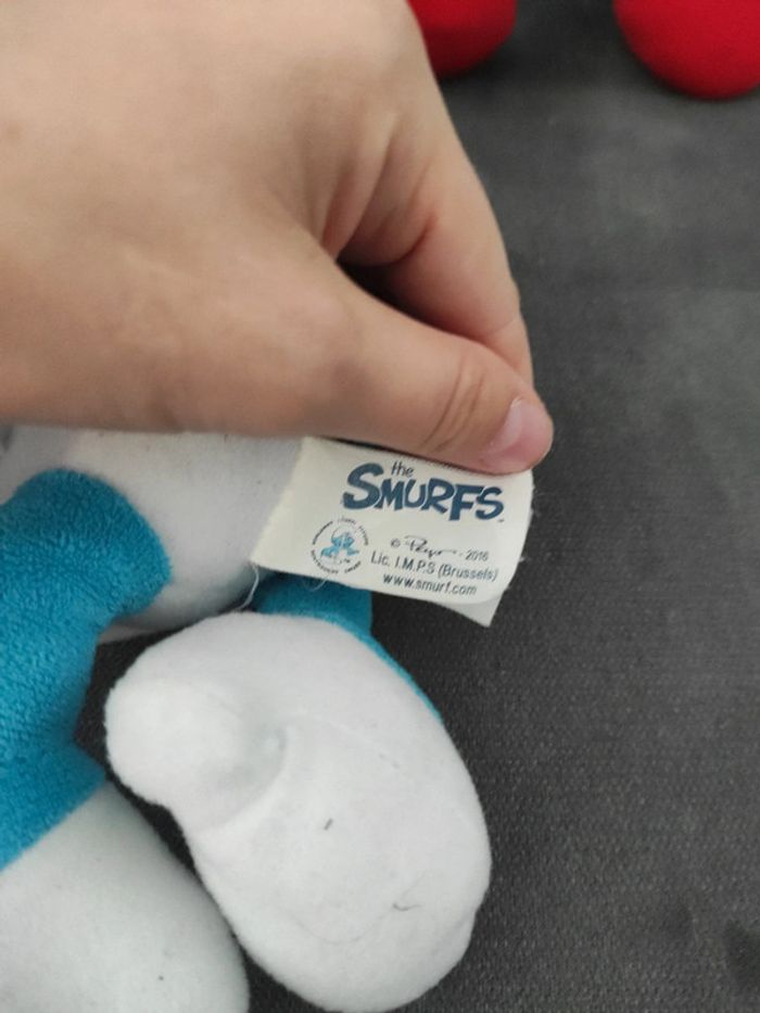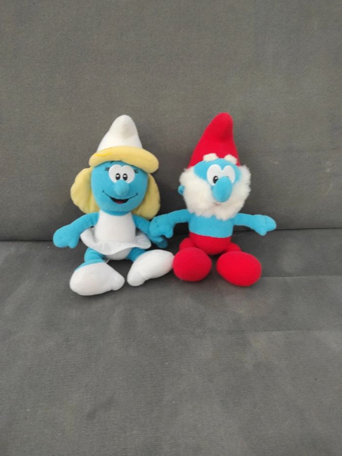 Lot de 2 peluches Schtroumpf et schtroumpfette en parfait état. L'étiquette du schtroumpf est coupée