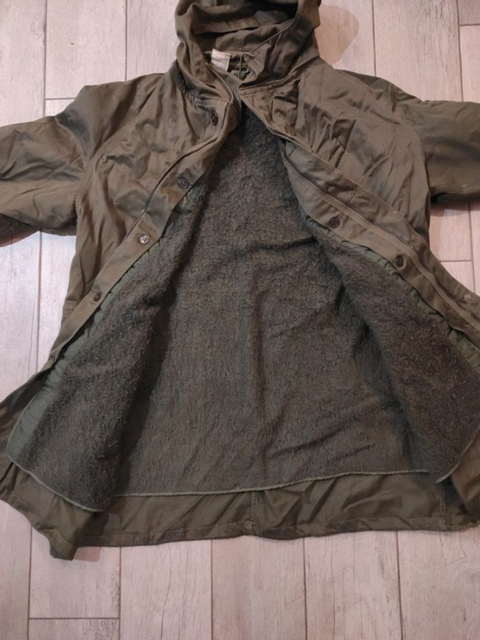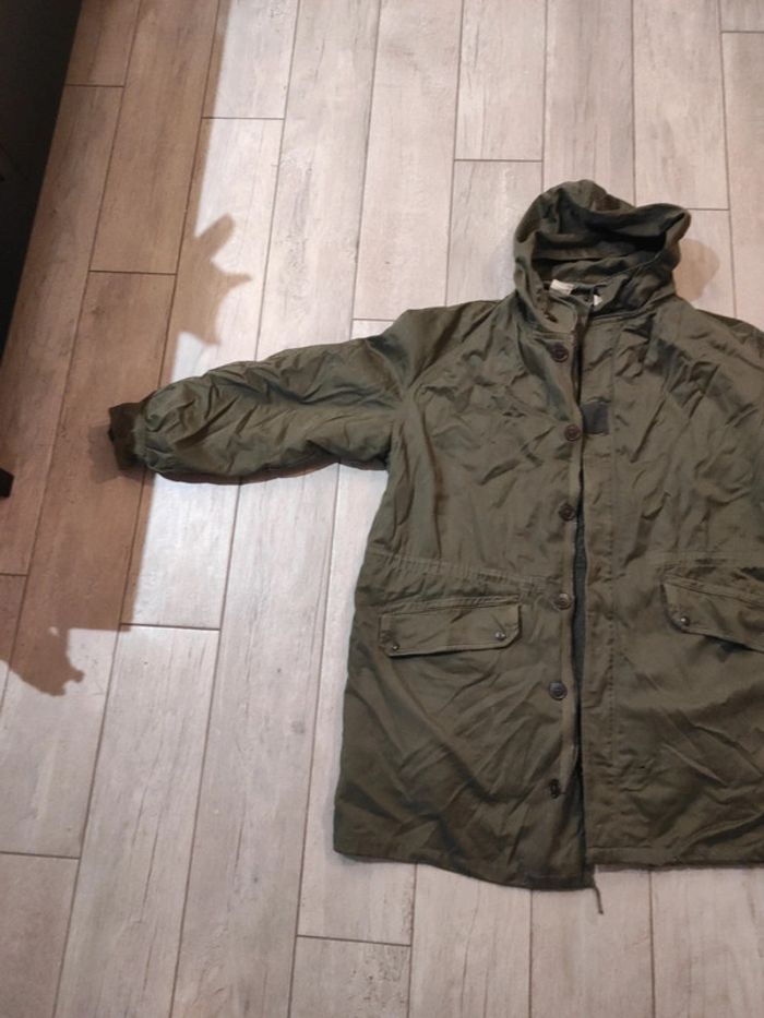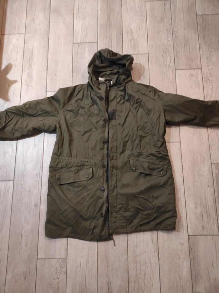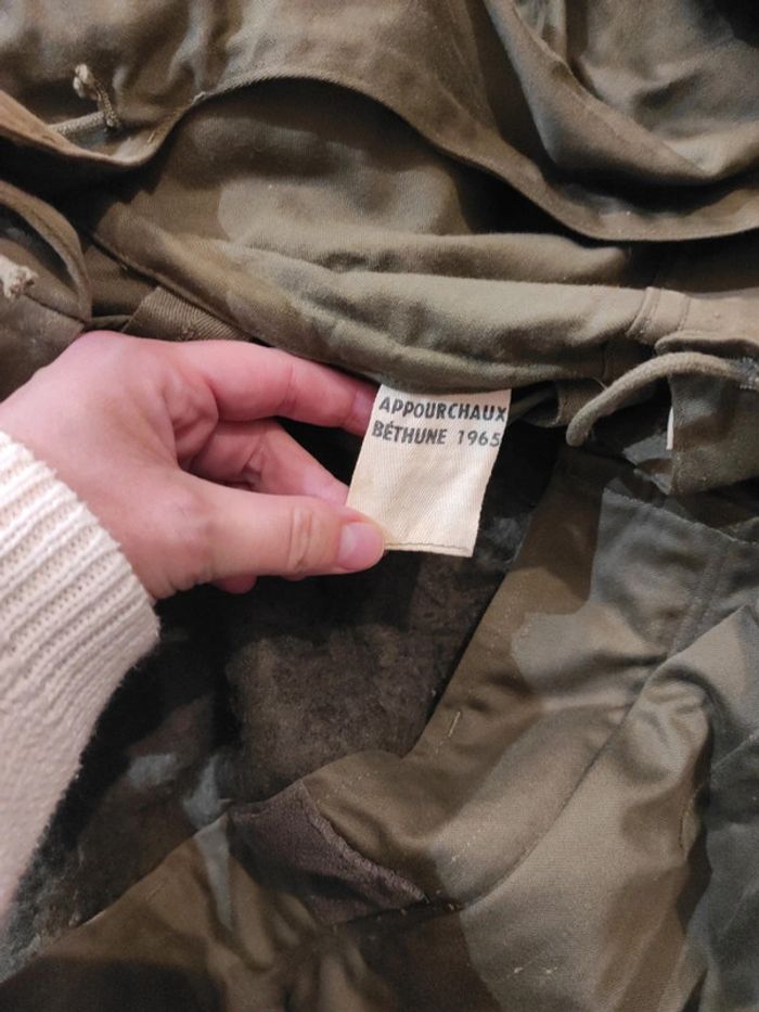 Parka M64 militaire doublure micro polaire, en bon état (un trou voir photo). Elle est kaki et longue. Il y a les mentions : " sedefi St André 1973" " 108 L 7085/9010" "Appourchaux Béthune 1965"