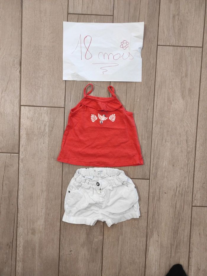 Ensemble short blanc et débardeur rouge 18 mois - photo numéro 1