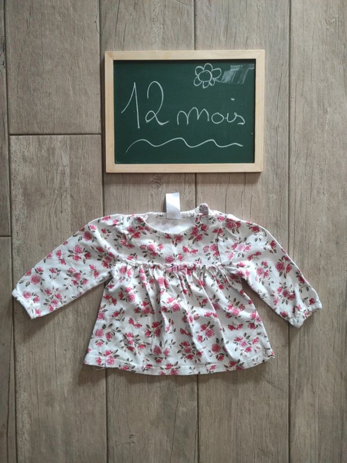 Pull blanc à fleurs rouges 12 mois - photo numéro 1