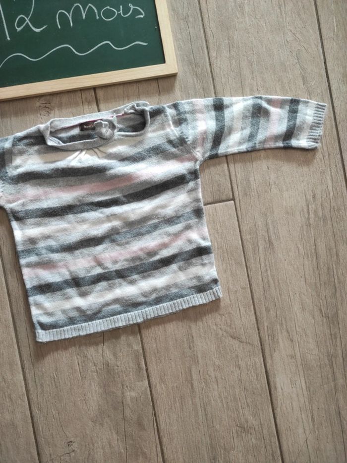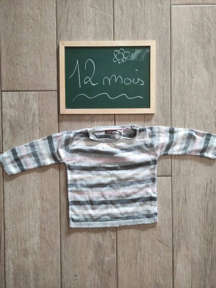 Pull rayé gris et rose 12 mois - photo numéro 1