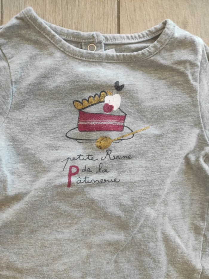 T-shirt gris " petite reine de la pâtisserie" taille 12 mois , marque Cadet Rousselle ✅ Pour filtrer par taille : aller dans "chercher" puis taper mon pseudo et mettre les filtres souhaités ✅ Réduction automatique dès 5 articles ✅ Négociation possible sur les lots