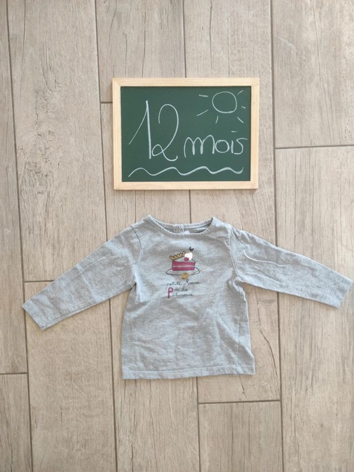 T-shirt manches longues gris 12 mois cadet Rousselle