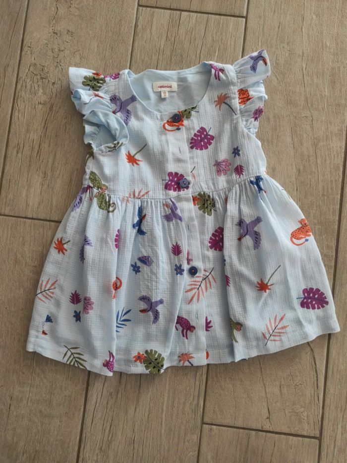 Très belle robe d'été bleu claire motif oiseaux, peu portée elle est en parfait état. Catimini, 12 mois ✅ Pour filtrer par taille : aller dans "chercher" puis taper mon pseudo et mettre les filtres souhaités ✅ Réduction sur les lots