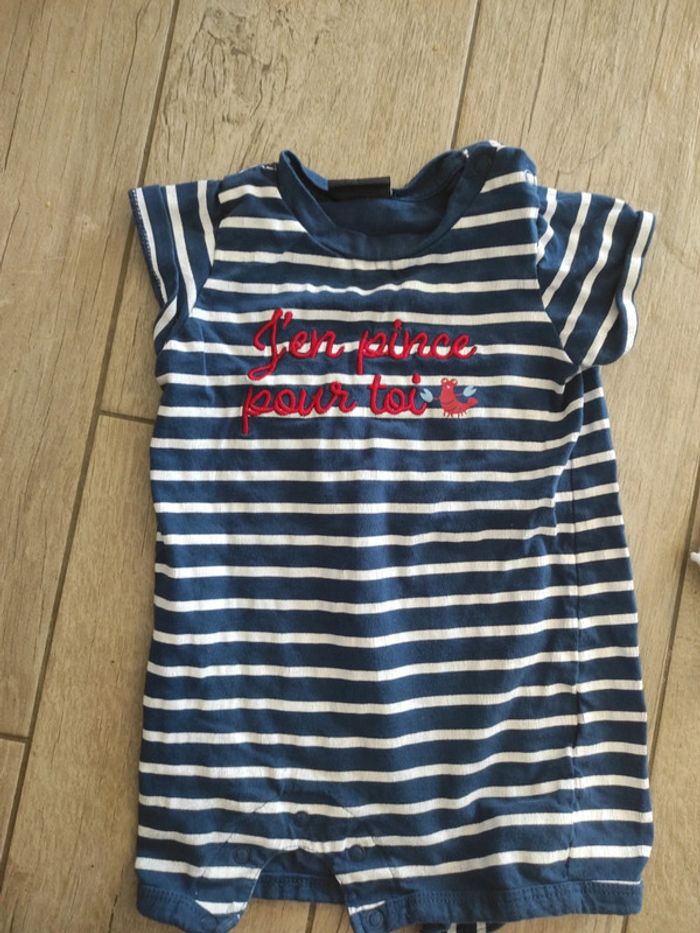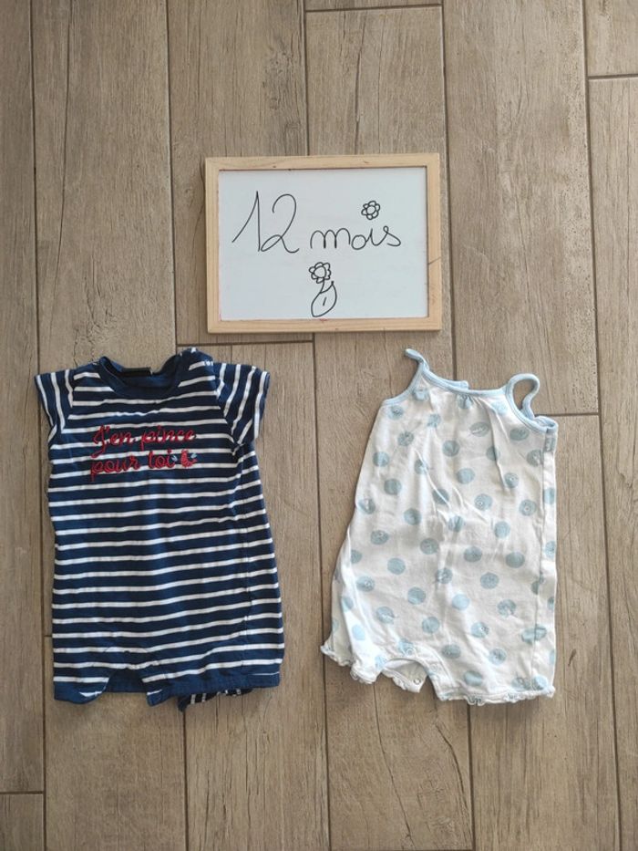 Lot de 2 bodys avec short intégré idéal pour l'été. Garçon ou mixte. 12 mois Dont un avec un crabbe "j'en pince pour toi" ✅ Pour filtrer par taille : aller dans "chercher" puis taper mon pseudo et mettre les filtres souhaités ✅ Réduction automatique dès 5 articles ✅ Négociation possible sur les lots