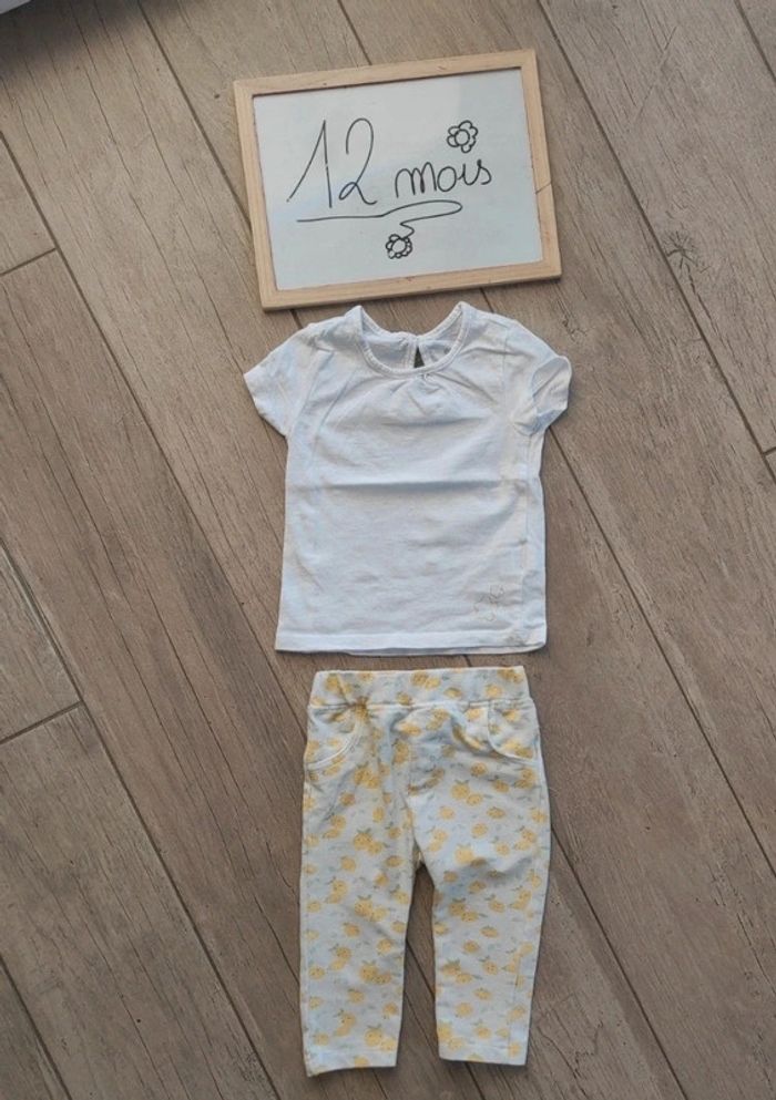 Ensemble pantalon fruit jaune et t-shirt uni blanc 12 mois - photo numéro 1