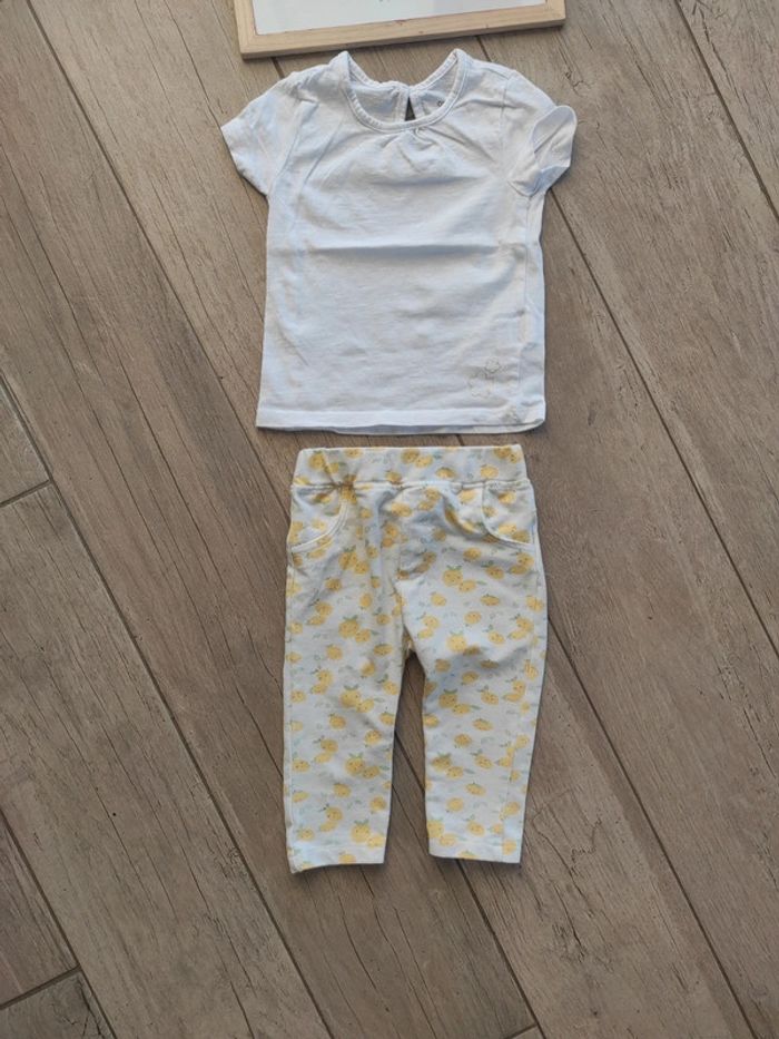 Ensemble pantalon fruit jaune et t-shirt uni blanc 12 mois - photo numéro 2