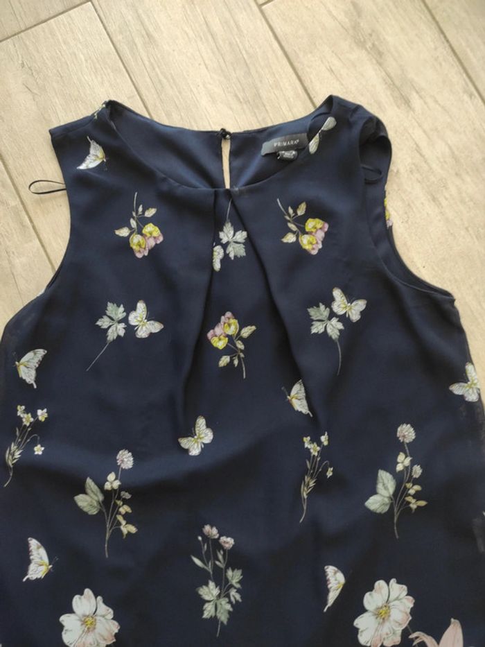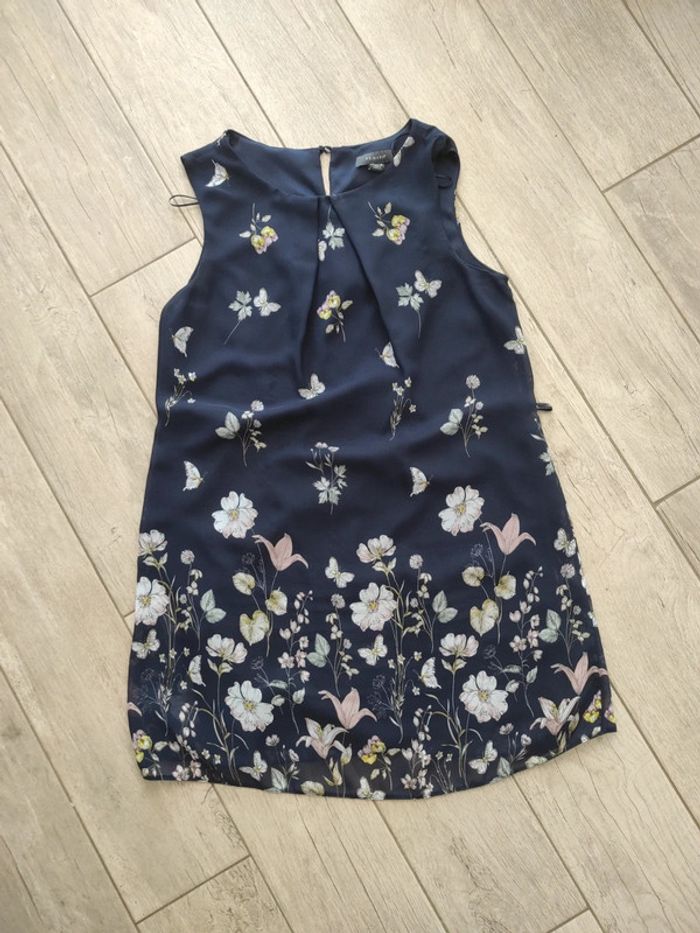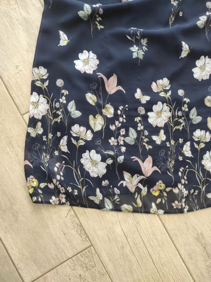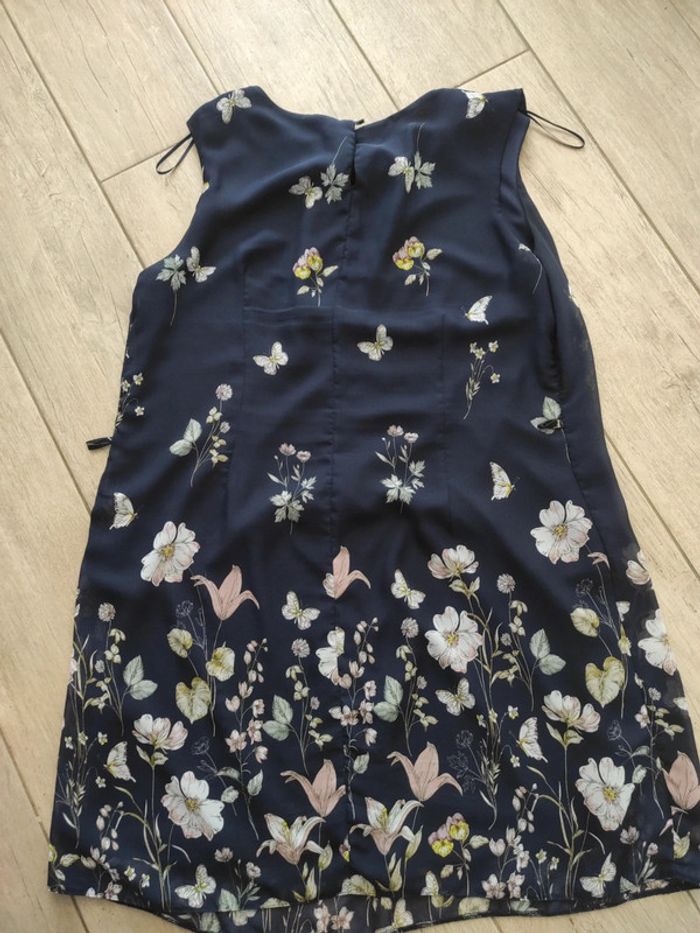 Robe d'été sans manche idéale pour cérémonie, bleue marine avec des fleurs. Fluide, agréable à porter. Taille 42. En parfait état. ➡️ Réduction sur les lots