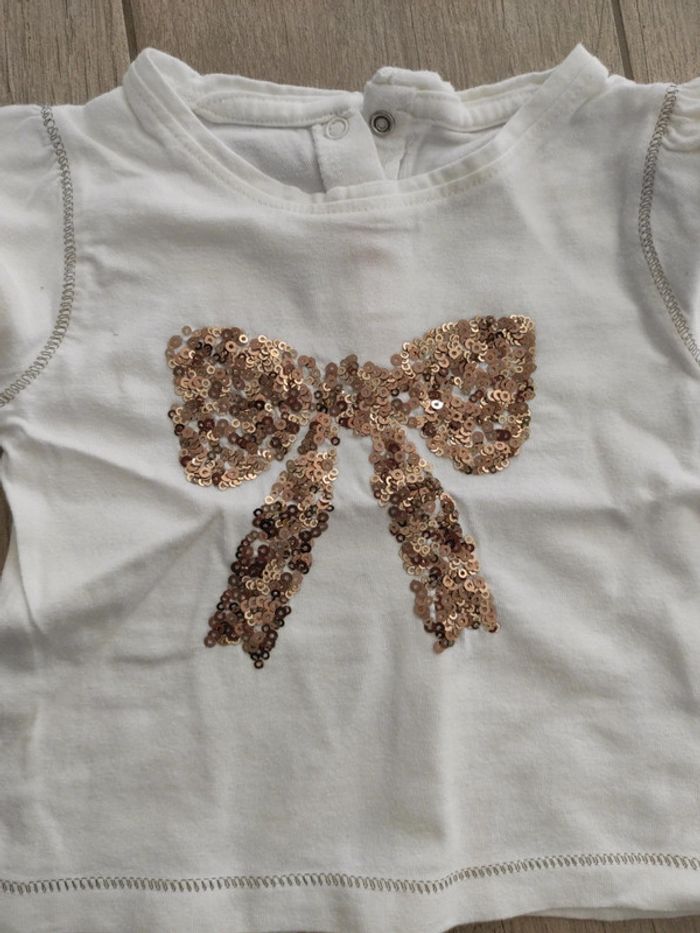 Gilet à capuche et t-shirt ML blanc et sequin doré 6 mois