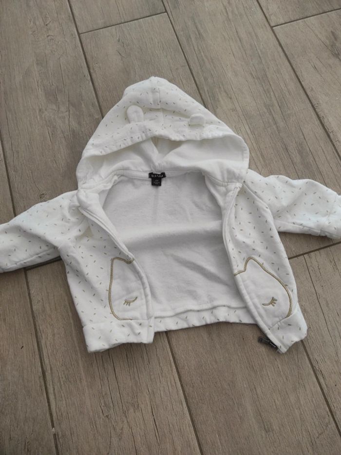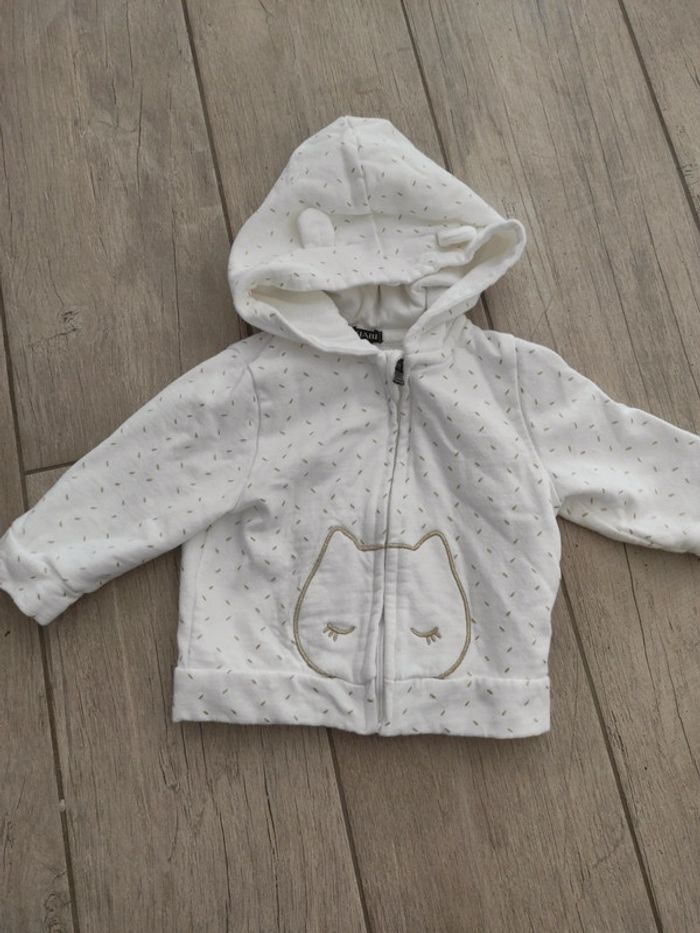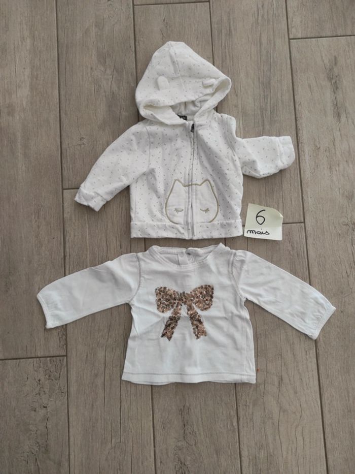 Gilet à capuche et t-shirt ML blanc et sequin doré 6 mois - photo numéro 1