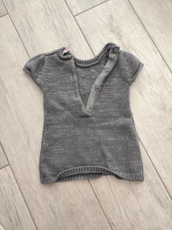 Robe sans manche épaisse, grise avec des fils couleurs or. Parfait état . 6 mois ➡️ Réduction sur les lots