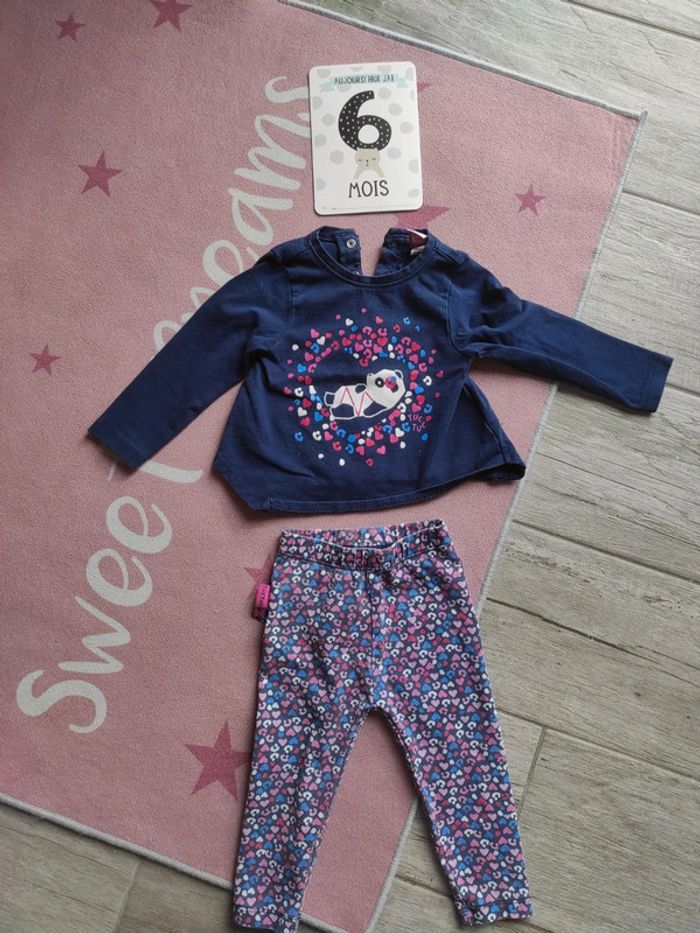 Ensemble fille en 6 mois, composé d'un legging et d'un t-shirt manches longues bleu motif ourson 🌺 réduction automatique activée sur les lots 🌺