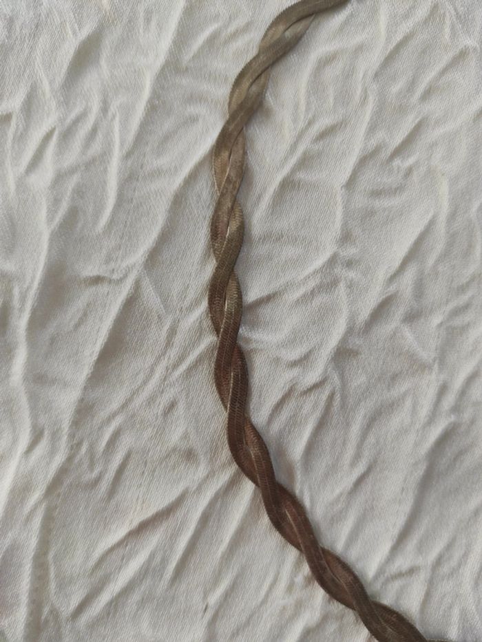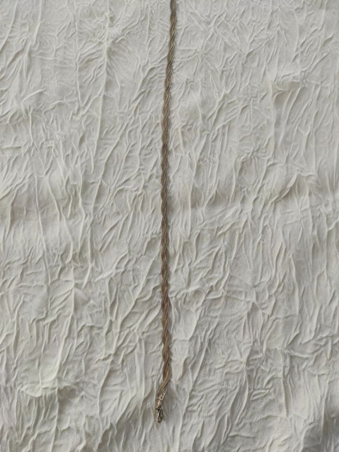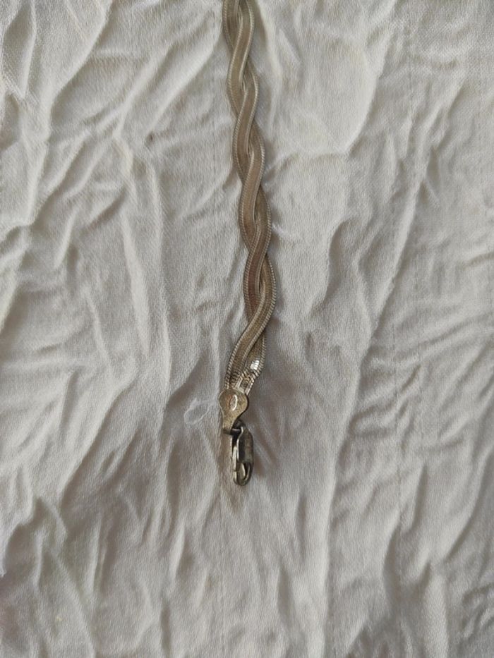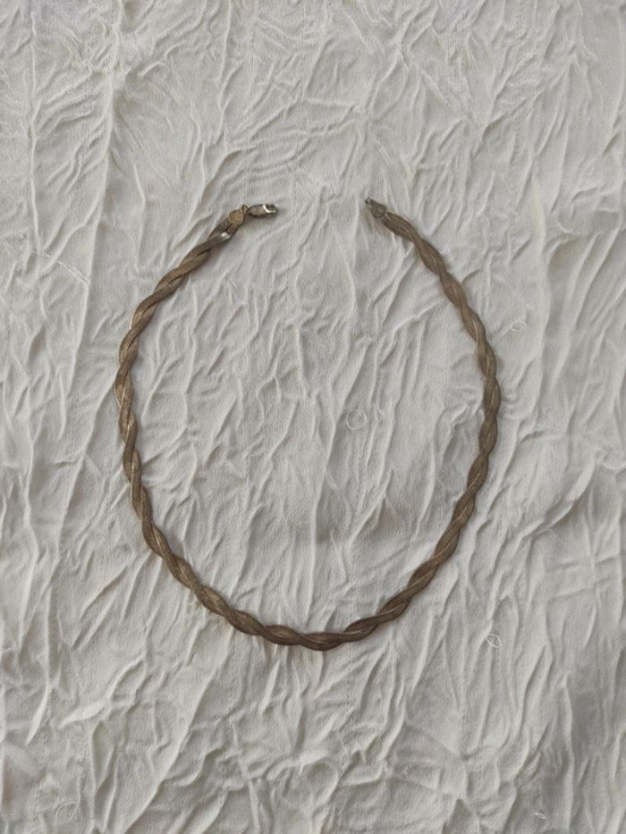 Collier torsadé argenté acheté en boutique de bijoux il y a plus de 10 ans donc prévoir un nettoyage pour raviver sa couleur d'origine