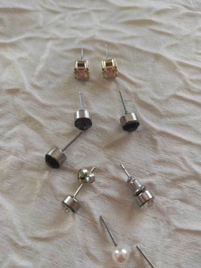 Lot de petites boucles d'oreilles , 4 paires complètes (il manque une sur la photo mais je l'ai)