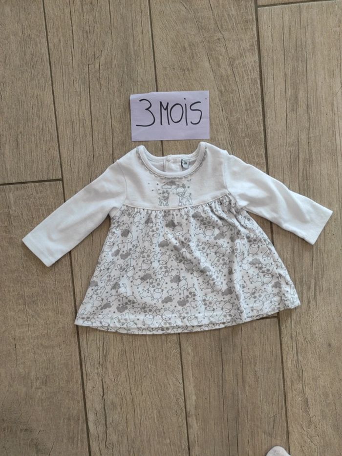 Robe blanche avec motif vache, manches longues. Taille 3 mois. 🌸 n'hésitez pas à creer un lot je ferai une réduction 🌸