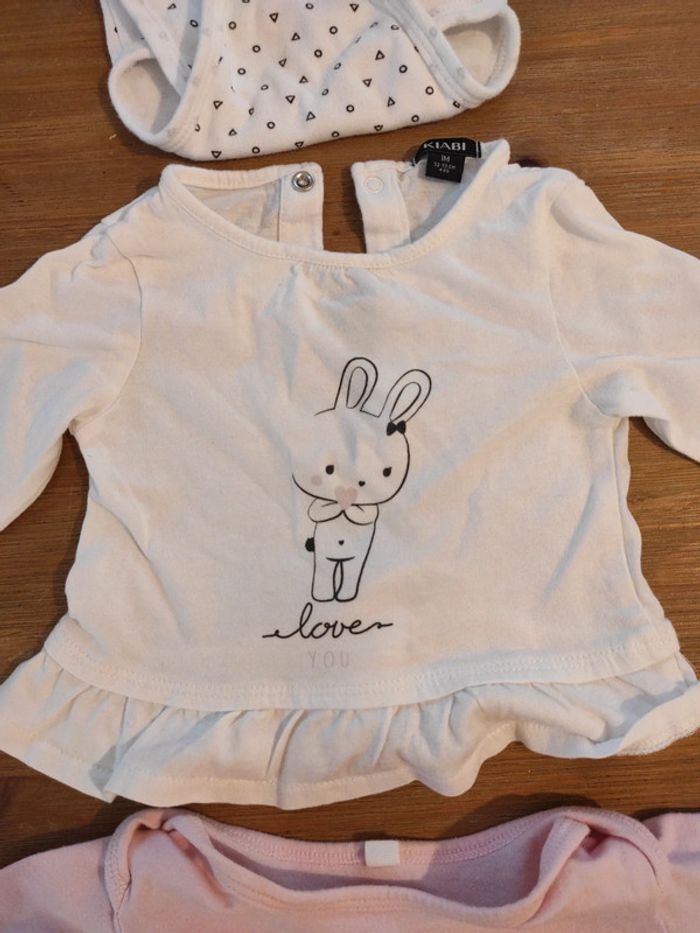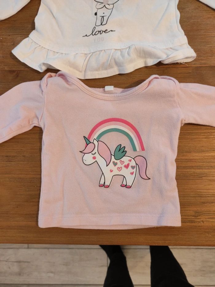 Lot composé de 2 t-shirt manches longues lapin et licorne. Taille 1 mois 🌸 je vends d'autres vêtements en 1 mois n'hésitez pas à faire défiler le dressing ou à faire une recherche par taille en tapant amelie.ciano je fais une réduction sur les lots 🌸