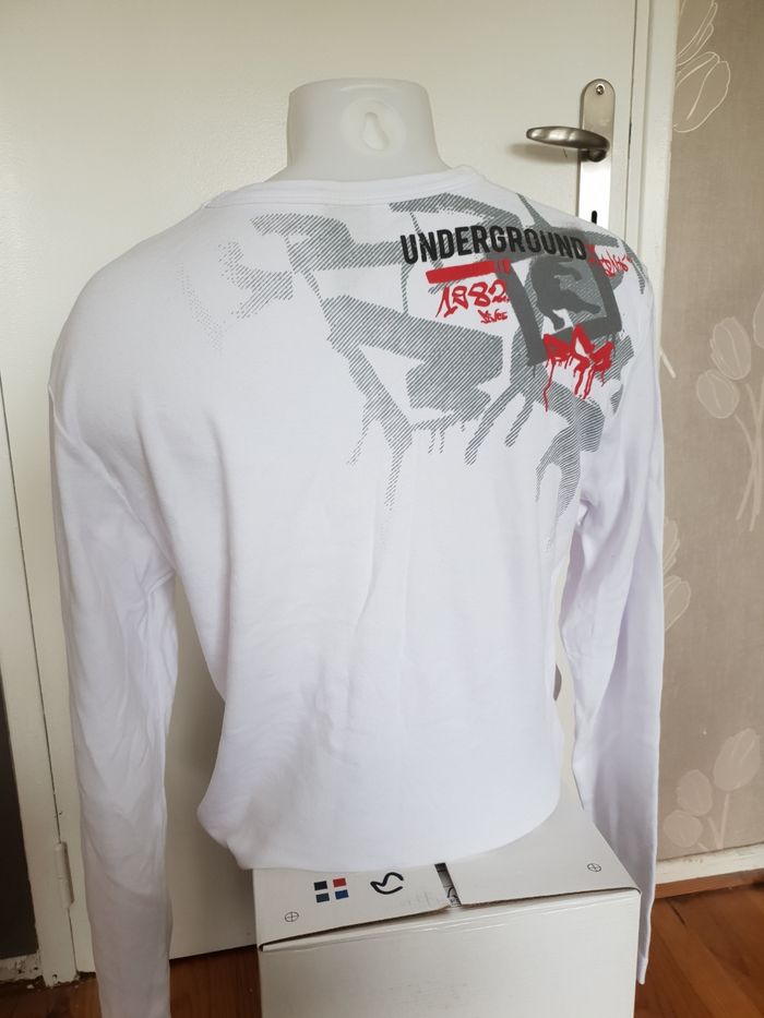 Tee shirt manches longues. Taille XL. Très bon état. Très légère tâche sur le bas côté. Voir 5eme photo. Réduction sur lot activée