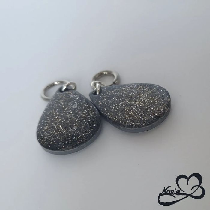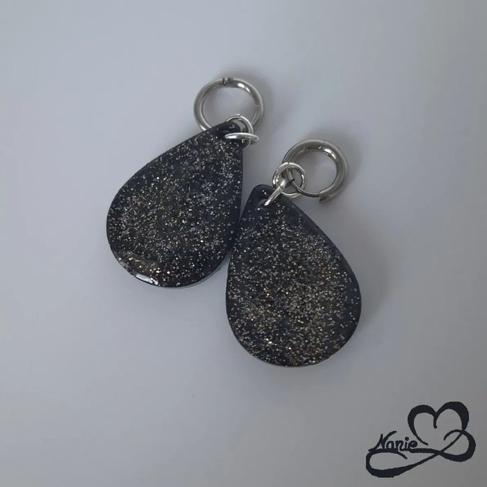 Ce modèle de boucle d'oreille, en acier inoxydable, en jesmonite et en résine époxy, est unique et fait main.