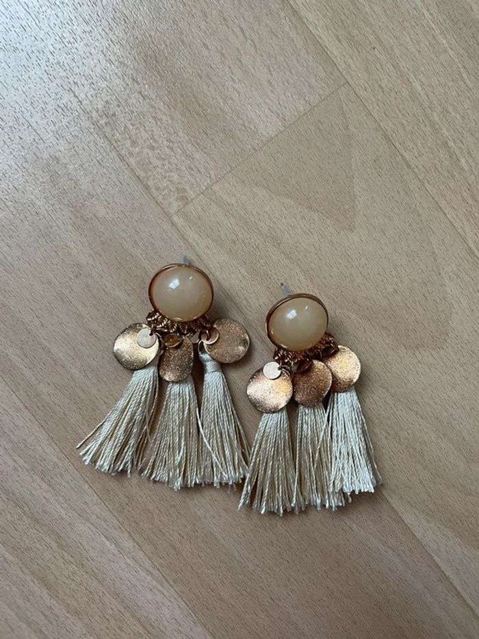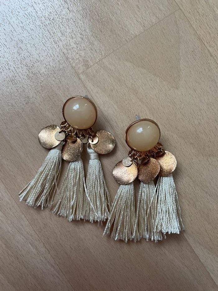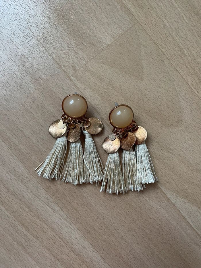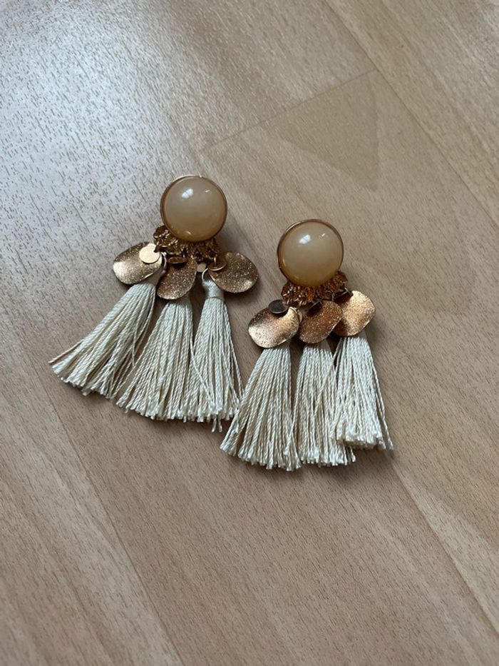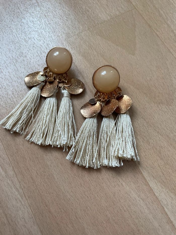 Boucles d’oreilles pompons beiges. #yessiibijoux