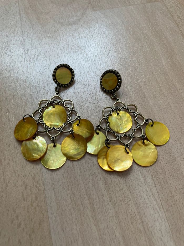 Boucles d’oreilles avec perles jaunes nacrés. #yessiibijoux
