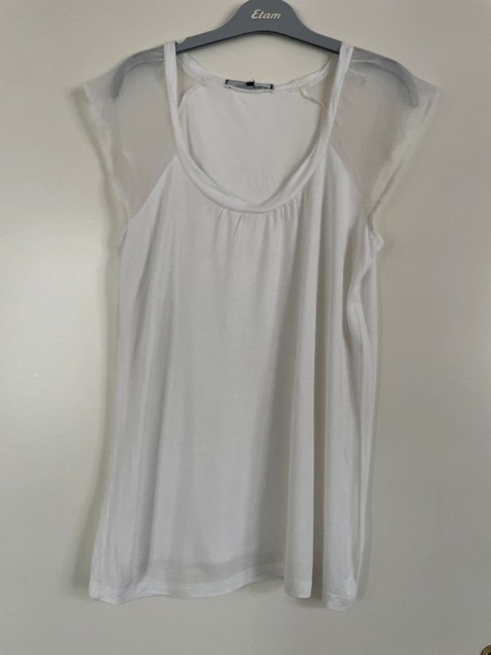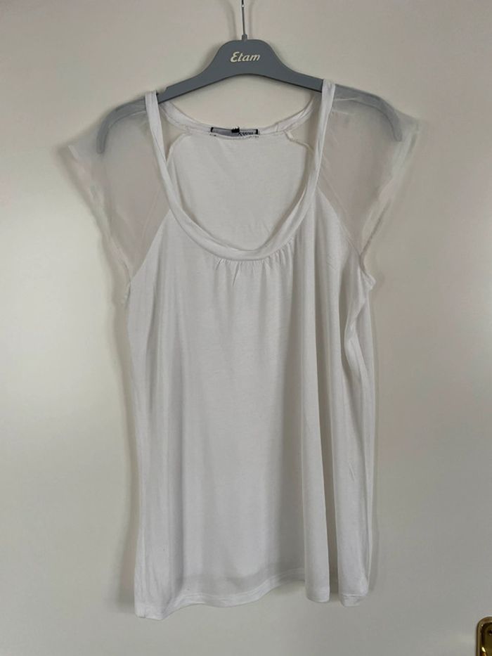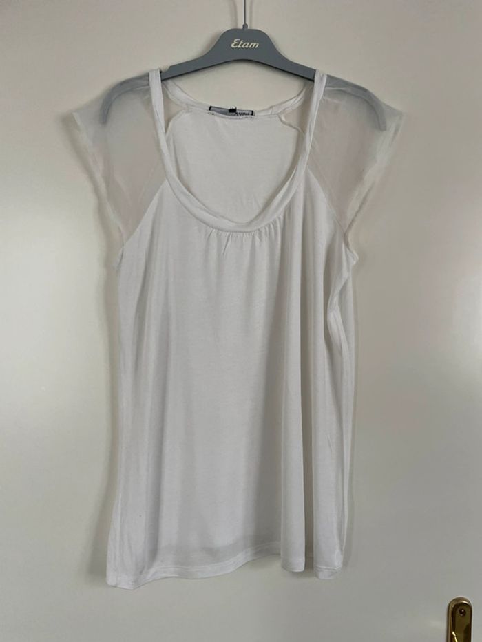 Tee Shirt Blanc à manches transparentes. Taille L. #yessiibijoux