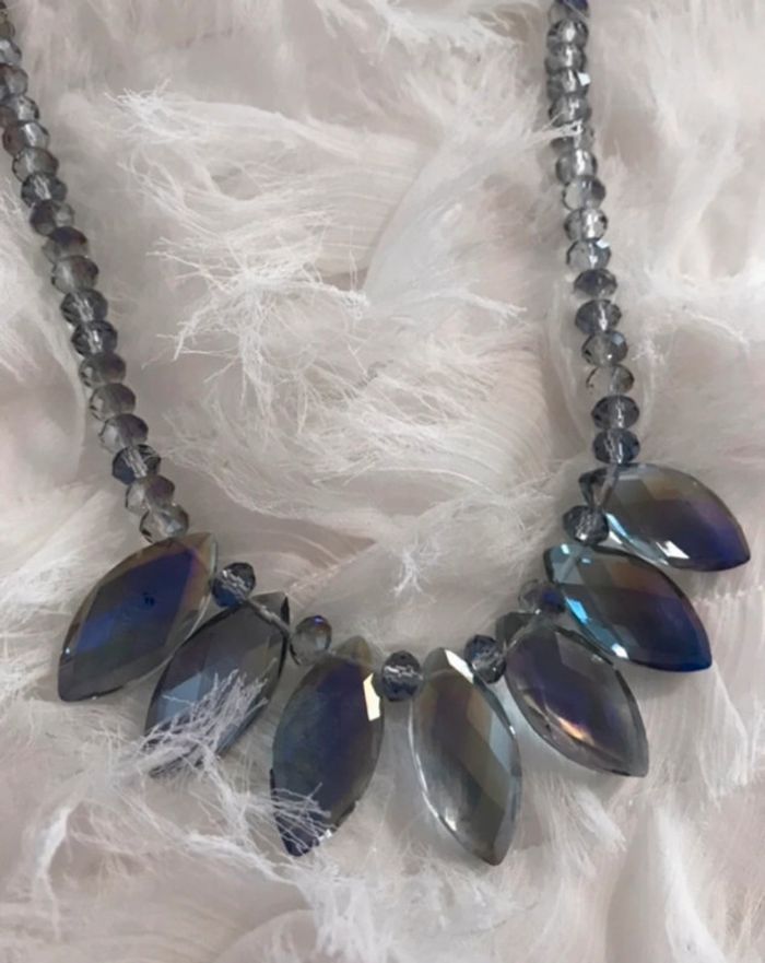 Collier fantaisie en perles bleues argentées. #yessiibijoux