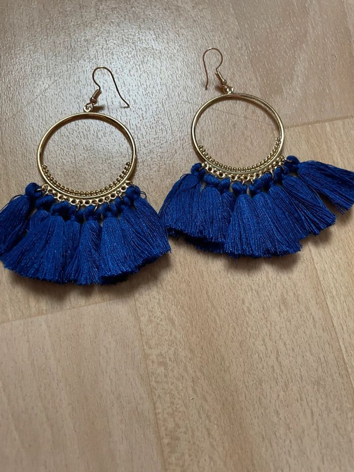 Boucles d’oreilles à pompons bleus. #yessiibijoux
