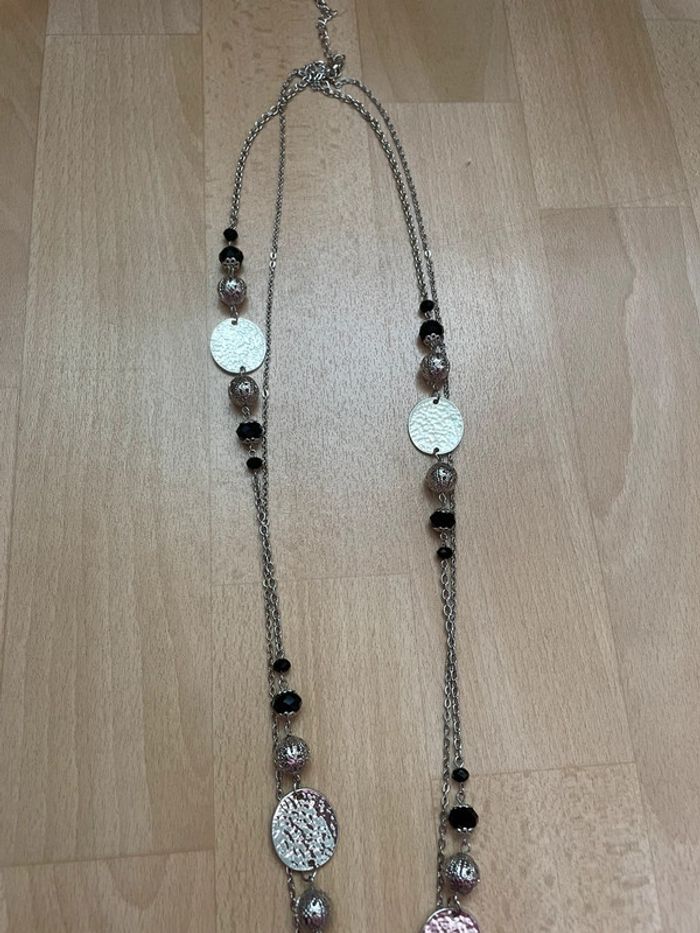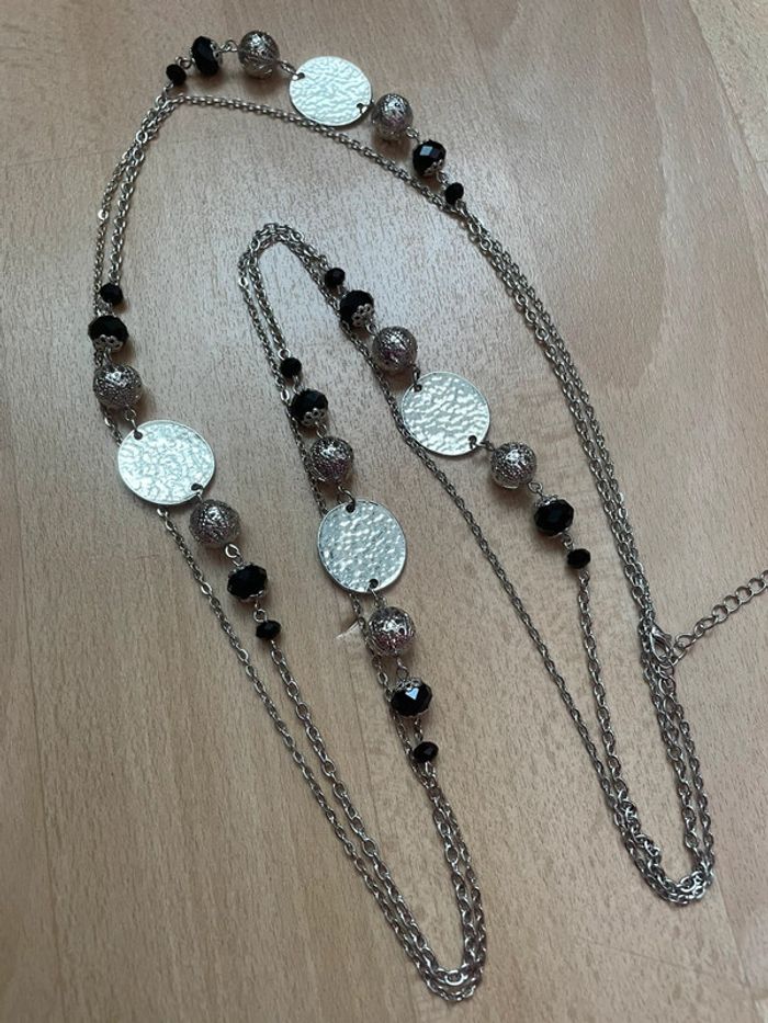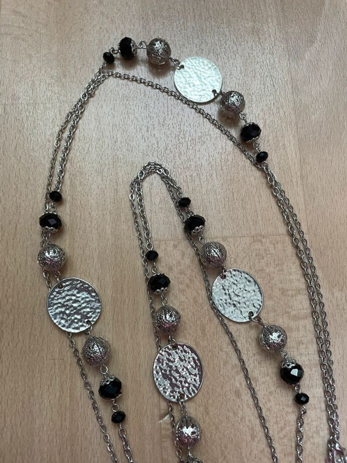 Collier sautoir argenté avec perles noires. #yessiibijoux