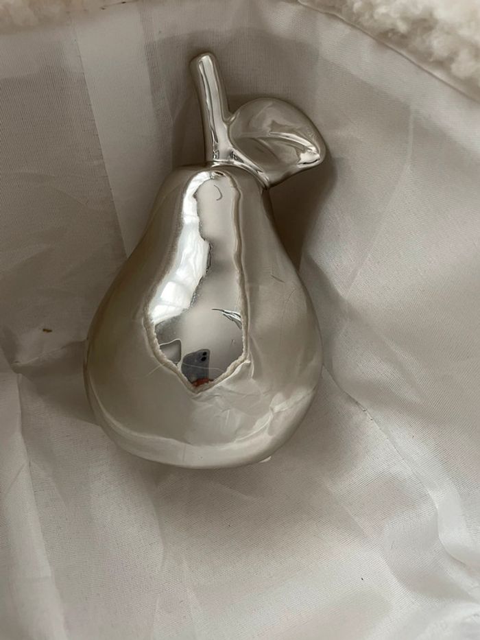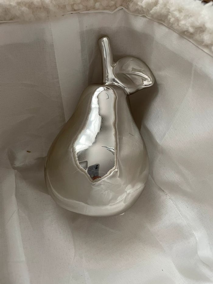 Décoration argentée en forme de poire. Hauteur 16cm. #yessiiaccessoires