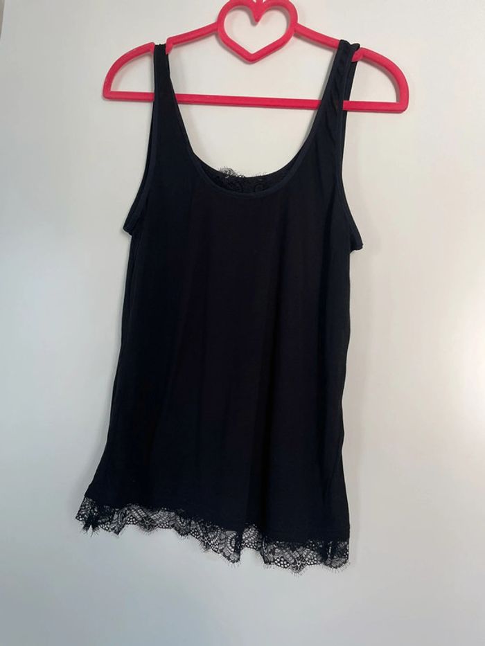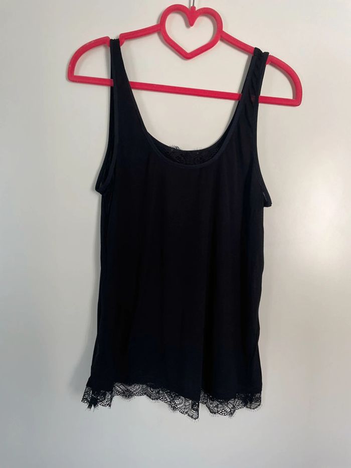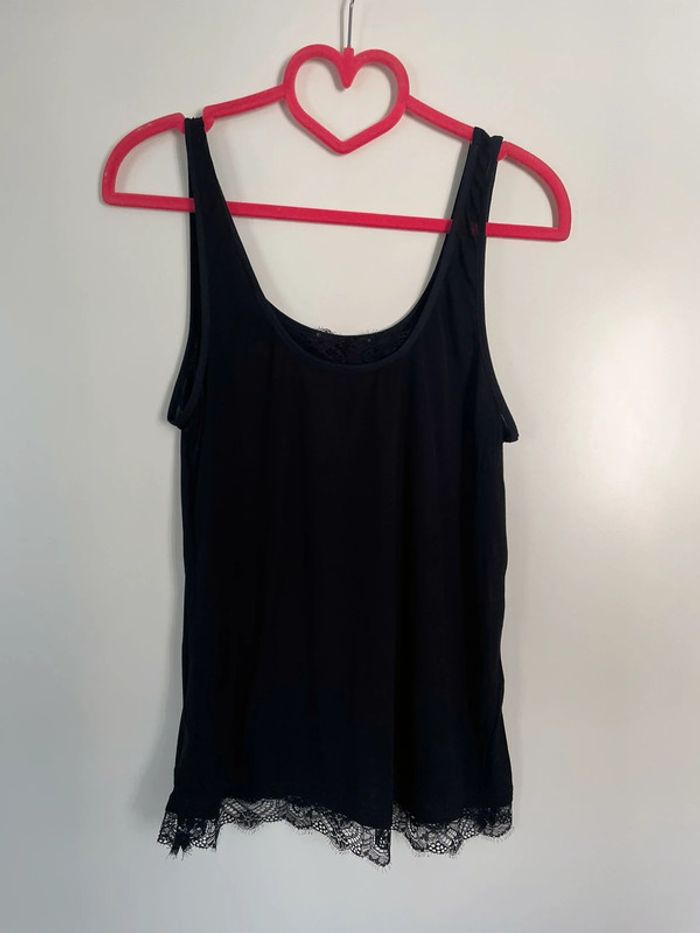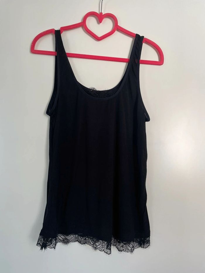 Débardeur noir avec dentelles sur le décolleté et le bas. #yessiitaille42