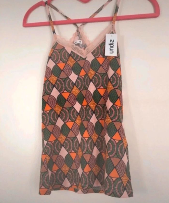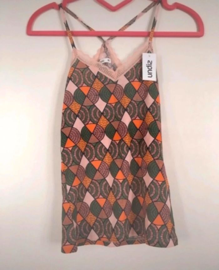 Débardeur à motifs avec dos croisé. Taille XS.