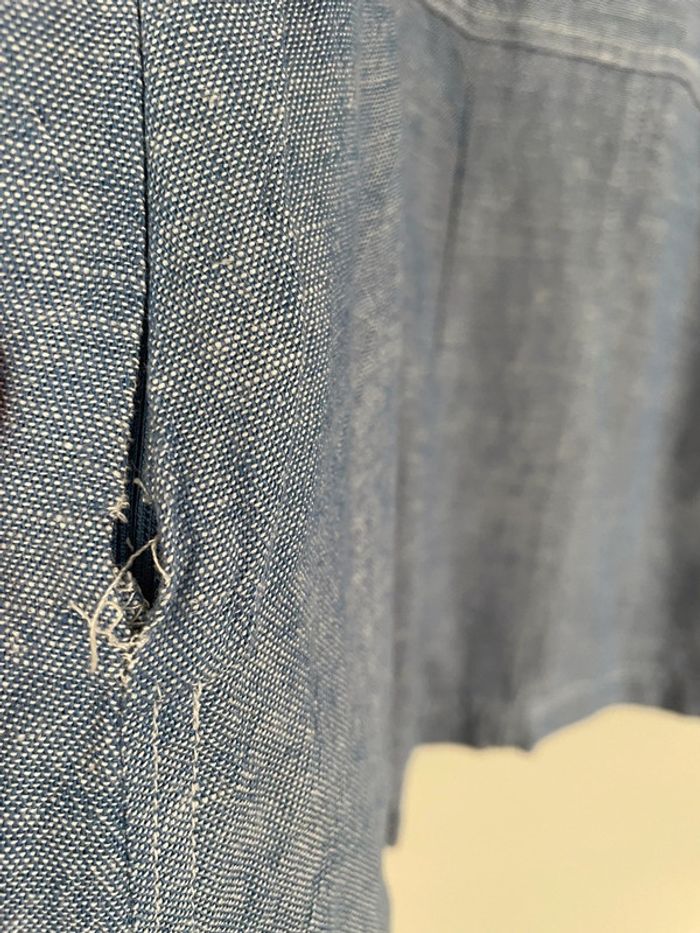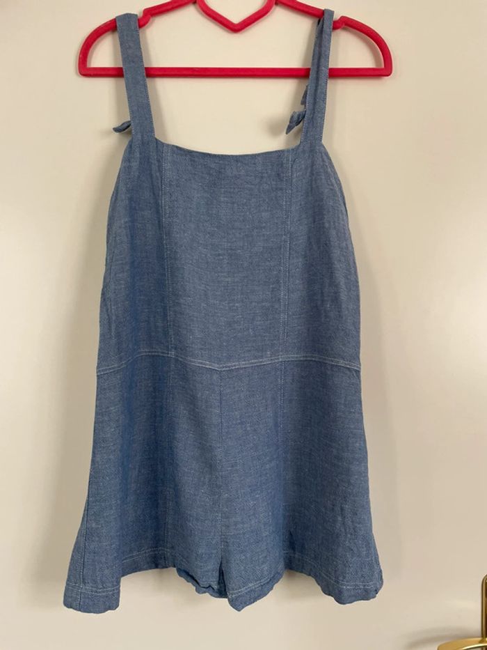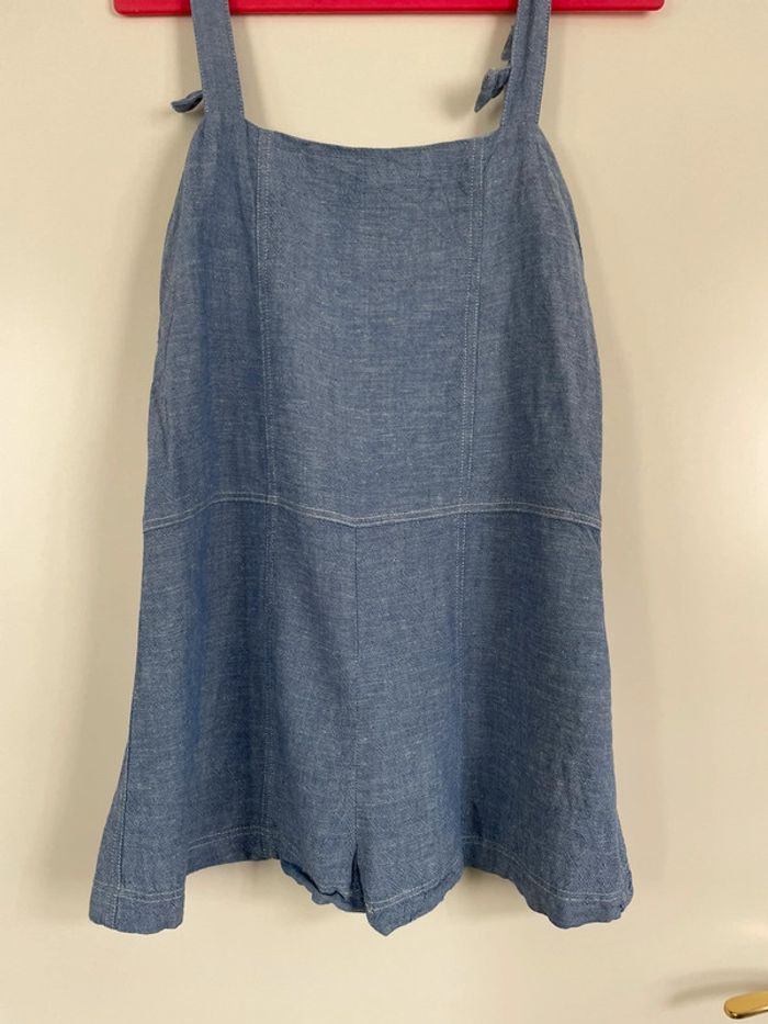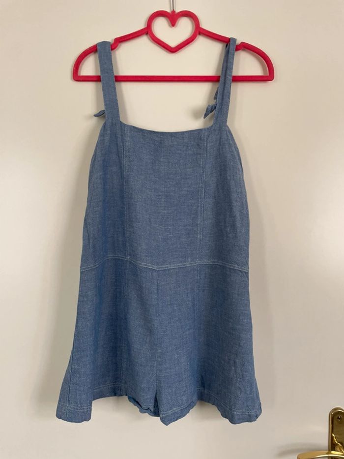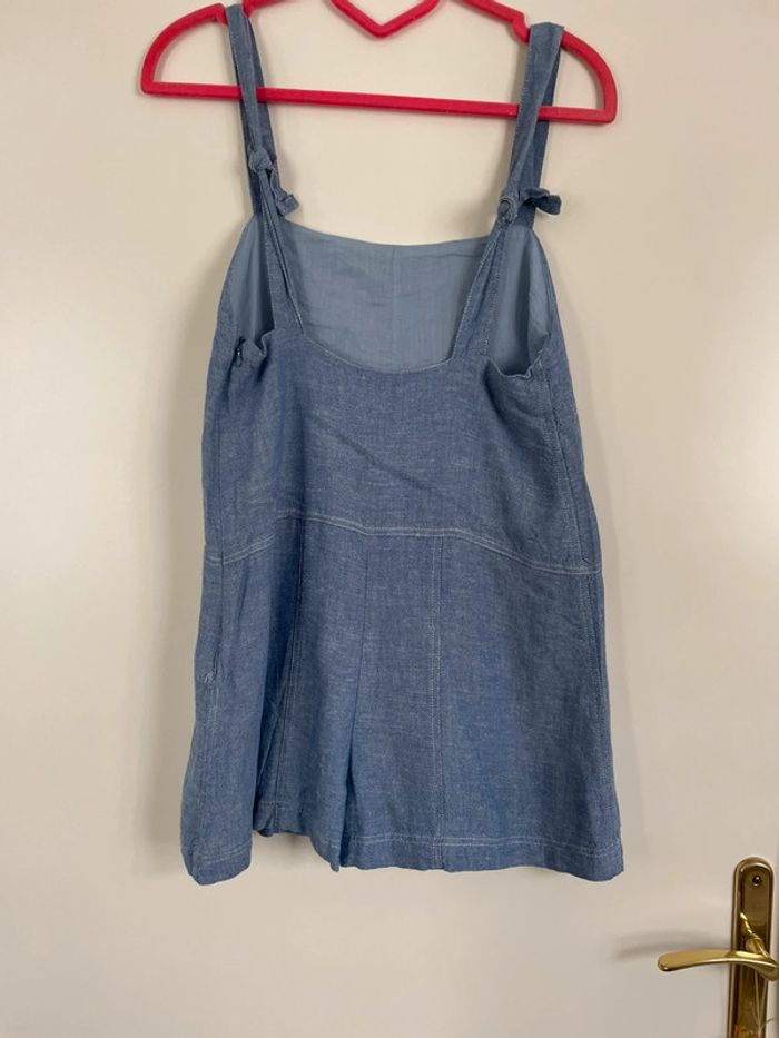 Combi short effet jean. Décousu au niveau du bas de la fermeture éclaire.
