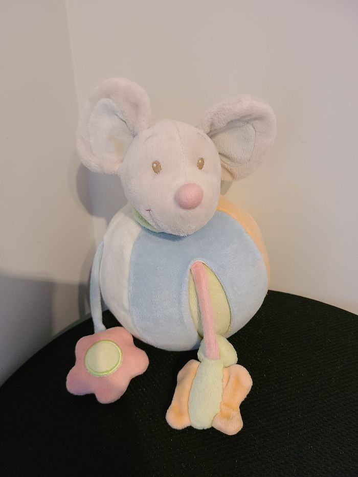 DOUDOU BALLE D'ACTIVITÉS SOURIS ROSE BLEU PAPILLON NATTOU 128