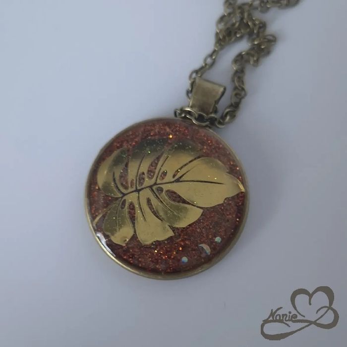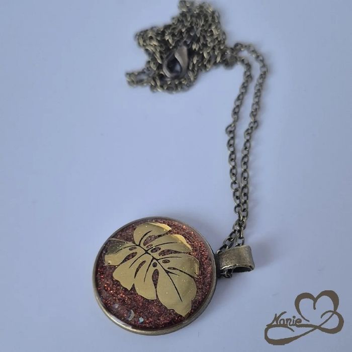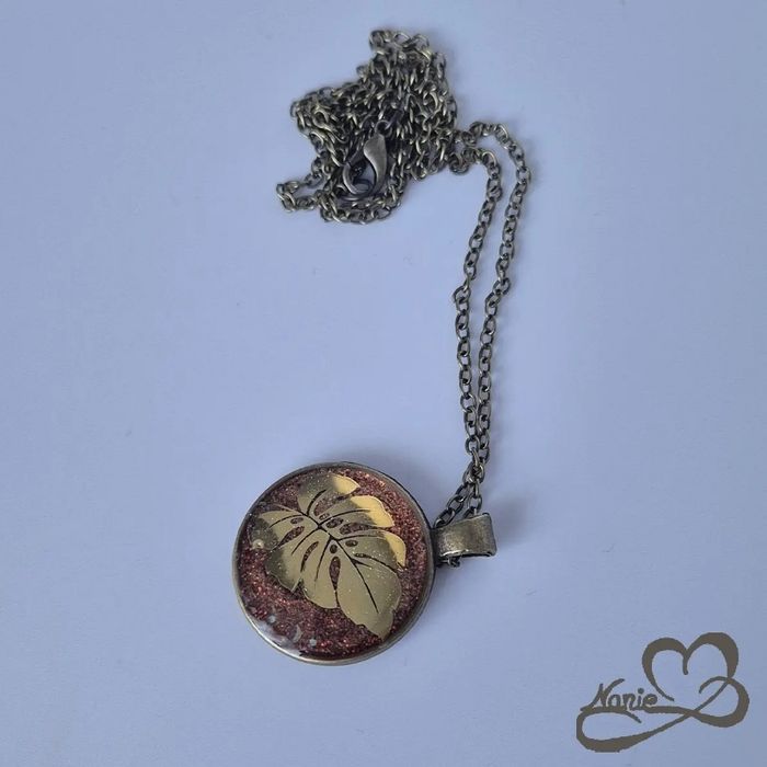 Pendentif en résine doré Le modèle Rhododendron Capturé, en acier inoxydable et en resine époxy, est unique et fait main.