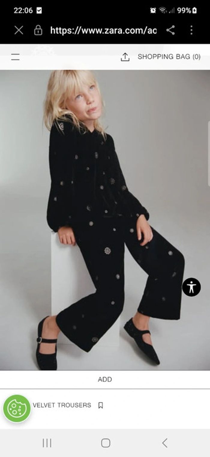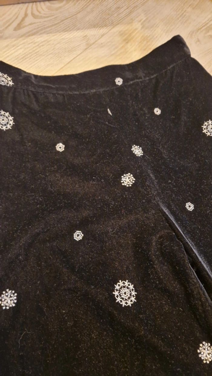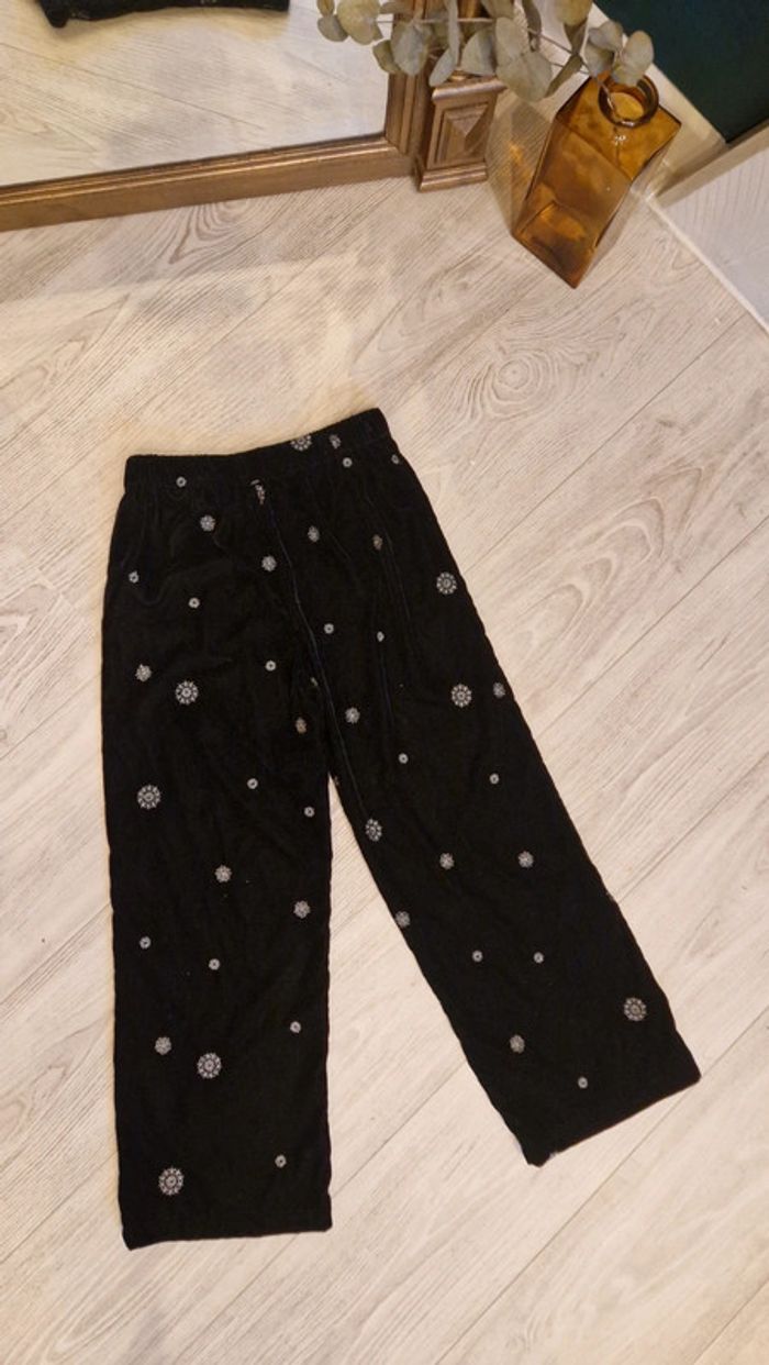 Superbe pantalon fluide large patte d'elephant en velours noir et broderie argenté. Taille élastique et extensible. Confortable et très chic. Idéal pour les fêtes tel que Noël, nouvel an ou anniversaire. Belle coupe. Taille 11/12 ans de chez Zara. Belle matière. Chic et classe. #zara #zarafille12ans #dressingdedihya12ans