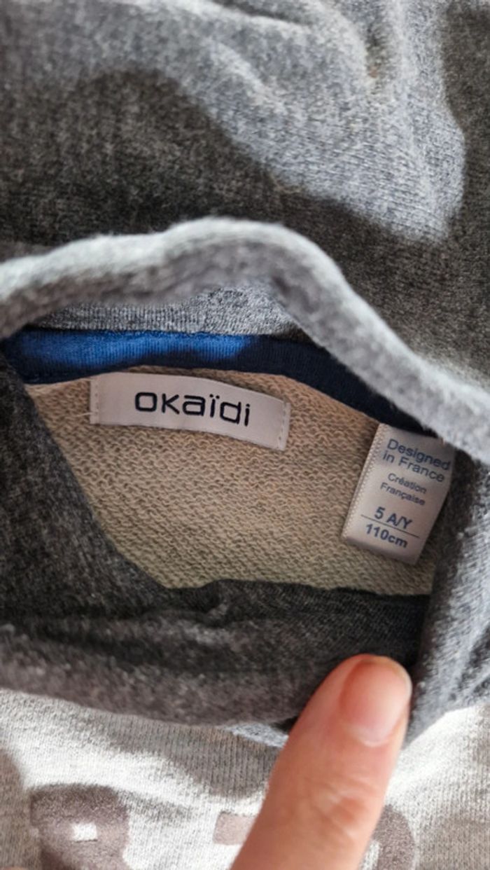 Sweat à capuche gris clair et foncé tigre Okaïdi 🏔 5 ans