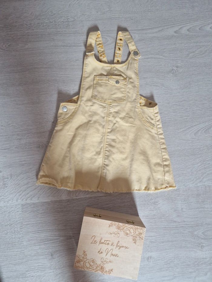 Superbe robe salopette jaune pale, pratique et confortable convient à toute les situations. Parfaite pour les 4 saisons selon les accessoires. Bretelles à pressions. Bas de la robe effilochée pour plus de style. Poche sur le torse pour ajouté une touche cool. Taille 18 / 24 mois de chez Zara. #zara #zarafille1824mois #fille18mois #dressingdeneva18mois #robezara1824mois