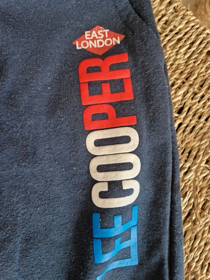 Pantalon casual /de sport / jogging / training bleu marine avec imprimé de la marque Lee Cooper. Taille élastique. Confortable et pratique à enfiler. Taille 4 ans. #Leecooper #garcon4ans #dressingdetaig4ans #leecoopergarcon4ans