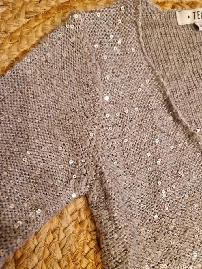 Gilet mi-long gris clair à sequin argent Tex 🐇3 / 4 ans🐇 - photo numéro 2
