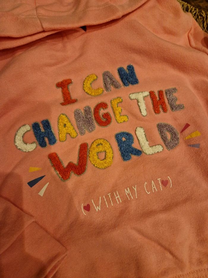 Beau sweat à capuche court rose avec broderie écriture en bouclette multicolor. Vraiment sympa et très girly. Confortable et pratique à porter. Taille 10 ans de chez Kiabi. #kiabi #sweatacapuchefille10ans #fille10ans #kiabifille10ans #dressingdedihya10ans