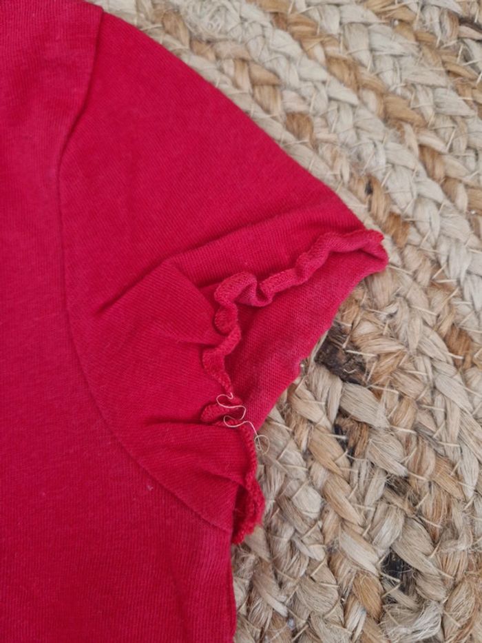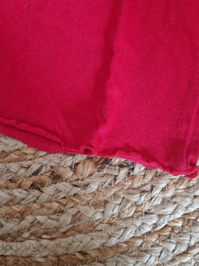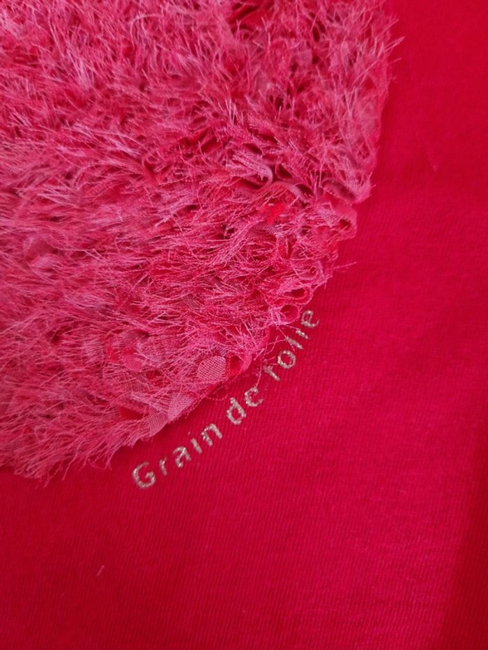 Superbe tee shirt manches courtes couleurs rouge/framboise avec fraise en tissus relief. Bord des manches et le bas du tee shirt fantaisie. Vraiment très mignon porté. De chez Tape à l'oeil en taille 2 ans. #tao #tapealoeil #tapealoeilfille #tapealoeilfille2ans #taofille2ans #teeshirtoriginalfille2ans #fraisefille2ans
